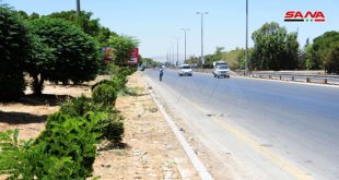 أعمال الزراعة لطريق معرض دمشق الدولي