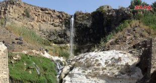 درعا-سانا بلدة تل شهاب تقع إلى الغرب من مدينة درعا وتبعد عنها 17 كيلو مترا وتتميز بمناظرها الخلابة وشلالاتها التي تنحدر على وادي خالد ويزينها السور والطواحين الرومانية القديمة. تصوير: مهند أسعد