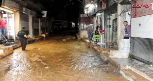 من آثار السيول الجارفة التي تعرضت لها بعض شوراع دمشق في ركن الدين جراء الأمطار الغزيرة أمس