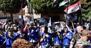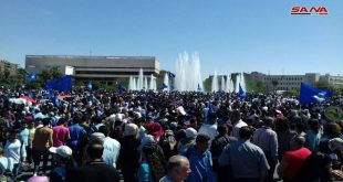 تجمع جماهيري حاشد في ساحة الأمويين احتفاء بعيد الجلاء وانتصارات الجيش على الإرهاب والتصدي للعدوان الثلاثي