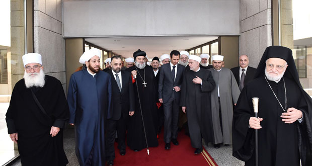 الرئيس الأسد يستقبل وفد رجال الدين الإسلامي والمسيحي المشاركين في المؤتمر العام السنوي لوزارة الأوقاف 2014-12-21 المزيد