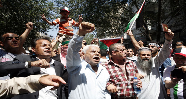 عمان-سانا اعتصم المئات من شبان الأحزاب والقوى القومية الأردنية اليوم في عمان تضامنا مع الشعب الفلسطيني ومقاومته ضد عدوان الاحتلال الإسرائيلي على قطاع غزة. وردد المعتصمون هتافات منددة بالاحتلال الإسرائيلي والدعم الأمريكي الغربي والرجعي العربي له مطالبين الدول العربية “بقطع …