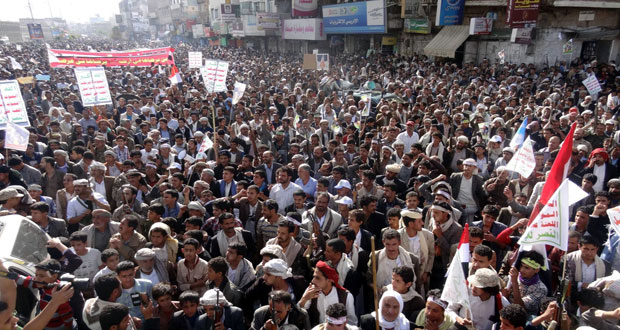 صنعاء-سانا شهدت العاصمة اليمنية صنعاء وعدد من المحافظات اليمنية الأخرى اليوم مظاهرات حاشدة تنديدا بـ “العدوان السعودي الأمريكي” ضد اليمن والذي ذهب ضحيته عشرات المدنيين الأبرياء. وأدان المشاركون في المظاهرة التي خرجت في ميدان التحرير بأمانة العاصمة بشدة “العدوان الهمجي” …