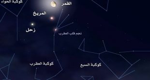 دمشق-سانا يقترن القمر مع كوكبي المريخ وزحل معاً بدءا من منتصف ليل الأحد المقبل وحتى فجر الثلاثاء على مسافة تبلغ نحو 5 درجات قوسية في كوكبة العقرب. وقال نائب رئيس الجمعية الفلكية السورية المهندس عبد العزيز سنوبر في تصريح لـ …