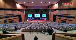 من التحضيرات لافتتاح المؤتمر الدولي حول عودة اللاجئين في قصر الأمويين بدمشق