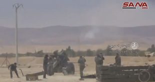 مشاهد من ضربات المدفعية والصواريخ لتحركات تنظيم “داعش” على التلال المشرفة على جبل المزبد في تدمر 2017-04-06 المزيد