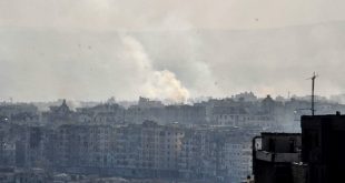 أعمدة الدخان تتصاعد نتيجة إحراق الإرهابيين لمقراتهم في حي الزبدية شرق حلب