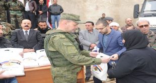 توزيع دفعة مساعدات روسية على الوافدين وعدد من أسر الشهداء في بلدة معربا بريف دمشق