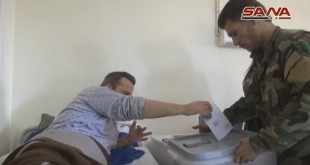 مقاتلو وجرحى الجيش في مشفى الشهيد يوسف العظمة يدلون بأصواتهم في انتخابات مجلس الشعب 2016-04-13 المزيد