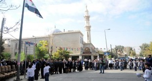 رفع العلم العربي السوري أمام مدرسة دوحة الحرية بدمشق