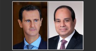 دمشق-سانا تلقى السيد الرئيس بشار الأسد اتصالاً هاتفياً من الرئيس عبد الفتاح السيسي رئيس جمهورية مصر العربية، جرى خلاله تبادل التهاني بمناسبة حلول شهر رمضان المبارك. وأعرب الرئيسان عن تمنياتهما للبلدين الشقيقين وشعبيهما وشعوب الأمتين العربية والإسلامية والعالم أجمع بالخير …