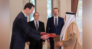 دمشق-سانا تقبل السيد الرئيس بشار الأسد أوراق اعتماد، حسن أحمد محمد سليمان الشحي سفيراً مفوضاً فوق العادة لدولة الإمارات العربية المتحدة لدى الجمهورية العربية السورية. وتم تقبل أوراق اعتماد السفير بحضور وزير الخارجية والمغتربين الدكتور فيصل المقداد، والأمين العام لرئاسة …
