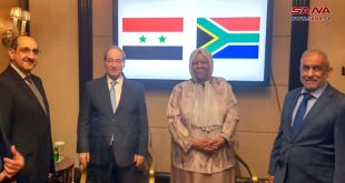 الرياض-سانا بحث وزير الخارجية والمغتربين الدكتور فيصل المقداد والوفد المرافق مع وزيرة خارجية جنوب إفريقيا الدكتورة ناليدي