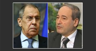 دمشق-سانا بحث الدكتور فيصل المقداد وزير الخارجية والمغتربين خلال اتصال هاتفي مع وزير الخارجية الروسي سيرغي لافروف آخر التطورات