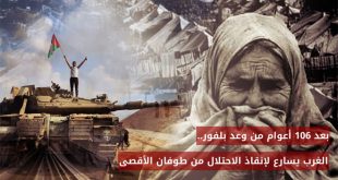المزيدالقدس المحتلة-سانا ذكرى مؤلمة تمر غداً على الشعب الفلسطيني.. 106 أعوام على “وعد بلفور” المشؤوم، الذي شكل بداية جريمة العصر