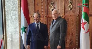 الجزائر-سانا عقد وزير الخارجية والمغتربين الدكتور فيصل المقداد جلسة مباحثات مع وزير الشؤون الخارجية والجالية الوطنية الجزائرية في الخارج أحمد عطاف