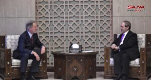 دمشق-سانا بحث الدكتور فيصل المقداد وزير الخارجية والمغتربين اليوم مع ديفيد بيسلي المدير التنفيذي لبرنامج الأغذية العالمي