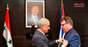 دمشق-سانا منح السيد الرئيس بشار الأسد سفير جمهورية كوبا في دمشق ميغيل بورتو بارغا وسام الاستحقاق السوري