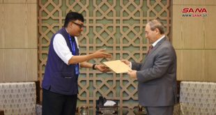 دمشق-سانا تسلم وزير الخارجية والمغتربين الدكتور فيصل المقداد اليوم أوراق اعتماد سوديبتو موكرجي ممثلاً مقيماً لبرنامج الأمم المتحدة الإنمائي في سورية.