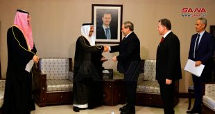 دمشق-سانا تسلم الدكتور فيصل المقداد وزير الخارجية والمغتربين اليوم نسخة من أوراق اعتماد وحيد مبارك السيار سفيراً مفوضاً وفوق العادة