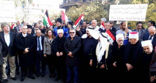 دمشق-سانا رفضاً لغطرسة كيان الاحتلال الصهيوني ورداً على ممارساته وقراره التوسع في إقامة مستوطنات جديدة في الجولان نفذ عدد من أبناء الجولان السوري المحتل اعتصاماً أمام مفوضية بعثة اللجنة الدولية للصليب الأحمر بدمشق. وجدد أبناء الجولان خلال الاعتصام تأكيدهم على …