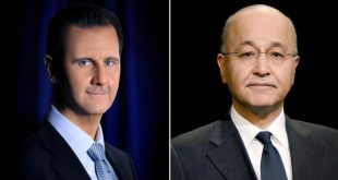 دمشق- سانا تلقى السيد الرئيس بشار الأسد اليوم اتصالاً هاتفياً من الرئيس العراقي برهم صالح جرى خلاله بحث العلاقات الثنائية بين البلدين الشقيقين وموضوع مكافحة الإرهاب والتنسيق والتعاون القائم بين سورية والعراق للقضاء على هذا الخطر الذي يتهدد البلدين. وتم …