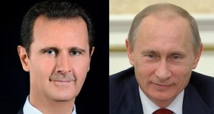 دمشق-سانا تلقى السيد الرئيس بشار الأسد اليوم برقية من الرئيس فلاديمير بوتين رئيس روسيا الاتحادية هنأه فيها بإعادة انتخابه رئيساً للجمهورية العربية السورية. وأكد الرئيس بوتين في برقيته أن نتائج الانتخابات تؤكد ثقة السوريين بقيادة الرئيس الأسد والتفافهم حولها لإعادة …