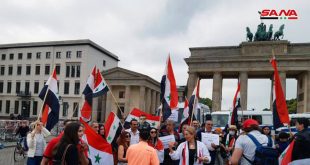 برلين-سانا نظم طلبتنا الدارسون في ألمانيا وأبناء الجالية السورية فيها وقفة احتجاجية أمام السفارة الأمريكية في برلين رفضاً للحصار الاقتصادي وما يسمى قانون قيصر الذي فرضته الولايات المتحدة ضد الشعب السوري. وأكد المشاركون في الوقفة التي جاءت بدعوة من الاتحاد …