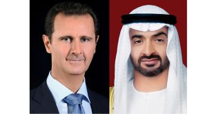 دمشق-سانا تلقى السيد الرئيس بشار الأسد اتصالاً هاتفياً من محمد بن زايد آل نهيان ولي عهد أبوظبي نائب القائد الأعلى للقوات المسلحة، بحث مستجدات وتداعيات انتشار فايروس كورونا في المنطقة والعالم والإجراءات والتدابير الاحترازية المتخذة في البلدين للتصدي لهذا الوباء. …