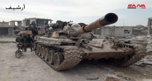 إدلب-سانا واصلت وحدات من الجيش العربي السوري عملياتها العسكرية ضد التنظيمات الإرهابية المدعومة من نظام أردوغان بريف إدلب ونفذت ضربات مكثفة ضد مواقعها وتحركاتها على محور سراقب وكبدتها خسائر كبيرة. وأفاد مراسل سانا من منطقة العمليات بأن وحدات الجيش تابعت …