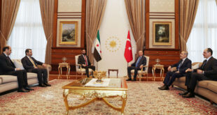 أنقرة-سانا استقبل رئيس الجمهورية التركية رجب طيب أردوغان رئيس الجمهورية العربية السورية السيد أحمد الشرع ووزير الخارجية أسعد الشيباني في المجمع الرئاسي بالعاصمة التركية أنقرة.