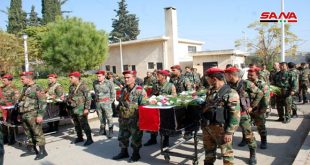 دمشق-سانا احتفلت القوات المسلحة بمختلف صنوفها بعيد الشهداء حيث ألقى قادة الوحدات العسكرية بهذه المناسبة كلمات أشاروا فيها إلى أن “سورية قدمت على مر التاريخ قوافل الشهداء في سبيل الدفاع عن ترابها وصون عزتها وكرامتها وهي لا تزال تقدم مواكب …