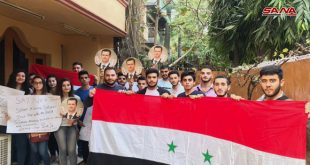 عواصم-سانا نظمت فروع الاتحاد الوطني لطلبة سورية وأبناء الجاليات السورية وقفات احتجاجية أمام بعثات الاتحاد الأوروبي في عدد من عواصم العالم اليوم تنديدا بالإجراءات الاقتصادية القسرية الأحادية الجانب التي تفرضها عدد من الدول الغربية على سورية تحت عنوان “فكوا حصاركم …