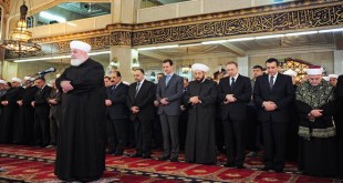 دمشق-سانا شارك السيد الرئيس بشار الأسد بالاحتفال الديني الذي أقامته وزارة الأوقاف مساء أمس إحياء لذكرى مولد الرسول الكريم محمد صلى الله عليه وسلم في جامع الأكرم بدمشق حيث أدى صلاة العشاء مؤتما بفضيلة الشيخ عدنان الأفيوني مفتي دمشق …