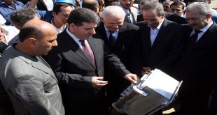 طرطوس-سانا بتوجيه من السيد الرئيس بشار الأسد وبمناسبة الذكرى الثانية والأربعين لحرب تشرين المجيدة دشن رئيس مجلس الوزراء الدكتور وائل الحلقي ووضع حجر الأساس لعدد من المشروعات الحيوية والصناعية والاقتصادية في محافظة طرطوس بقيمة إجمالية تصل الى 15 مليار ليرة …