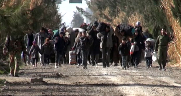 عشرات العائلات من قرى دوما تواصل اللجوء إلى الجيش العربي السوري لتأمين الخروج الآمن من براثن التنظيمات الإرهابية التكفيرية- فيديو