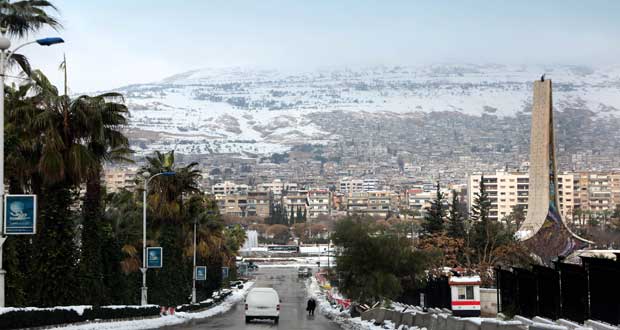 دمشق-سانا زينت الثلوج شوارع العاصمة دمشق وضواحيها لتزرع الأمل والبهجة في النفوس.