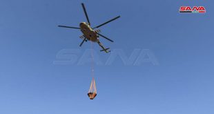 حوامات الجيش تشارك في إخماد الحريق الذي اندلع في منطقة الحيلونة بريف حماة