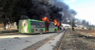 التنظيمات الإرهابية تحرق عددا من الحافلات المتجهة إلى الفوعة وكفريا لإجلاء المرضى والجرحى 2016-12-18 المزيد