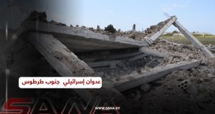 آثار العدوان الإسرائيلي على محيط بلدة الحميدية جنوب طرطوس