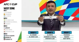 كوالالمبور-سانا أسفرت قرعة كأس الاتحاد الآسيوي لكرة القدم التي أجريت اليوم في العاصمة الماليزية كوالالمبور