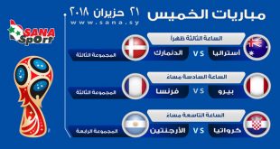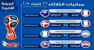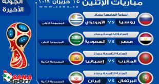 مباريات اليوم في مونديال روسيا 2018