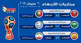 مباريات اليوم ضمن منافسات مونديال روسيا 2018