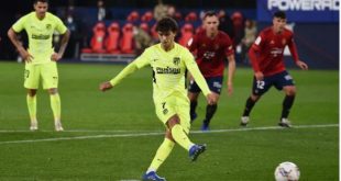 مدريد-سانا فاز أتلتيكو مدريد اليوم على مضيفه أوساسونا بثلاثة أهداف مقابل هدف واحد في دوري الدرجة الأولى الإسباني لكرة القدم. وذكرت وكالة رويترز أن أتلتيكو مدريد تقدم في المباراة في الدقيقة 43 من ركلة جزاء نفذها المهاجم جواو فيلكس وثم …