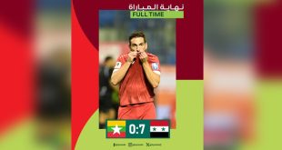 الرياض-سانا فاز منتخب سورية الأول لكرة القدم على منتخب ميانمار اليوم بسبعة أهداف دون رد في مباراتهما