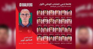 دمشق-سانا أعلن المدير الفني لمنتخب سورية لكرة القدم هيكتور كوبر قائمة لاعبي المنتخب التي ستخوض
