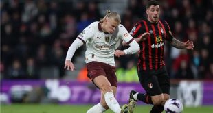 بورنموث-سانا فاز فريق مانشستر سيتي على مضيفه بورنموث بهدف مقابل لا شيء مقلصاً الفارق