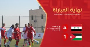 عمان-سانا فاز منتخب سورية لكرة القدم لفئة الواعدات على نظيره الأردني ب بأربعة أهداف لهدف في الجولة الثانية من بطولة غرب آسيا