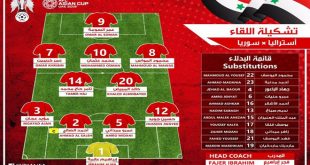 أبوظبي-سانا أعلن مدرب منتخب سورية للرجال بكرة القدم فجر ابراهيم قائمة اللاعبين المشاركة في المباراة المصيرية مع المنتخب الأسترالي ضمن منافسات الجولة الثالثة والأخيرة للمجموعة الثانية من دور المجموعات في نهائيات آسيا المقامة حاليا في الإمارات العربية المتحدة . وضمت …
