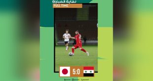 جدة-سانا خسر منتخب سورية الأول بكرة القدم أمام نظيره الياباني بخمسة أهداف دون رد في المباراة، التي